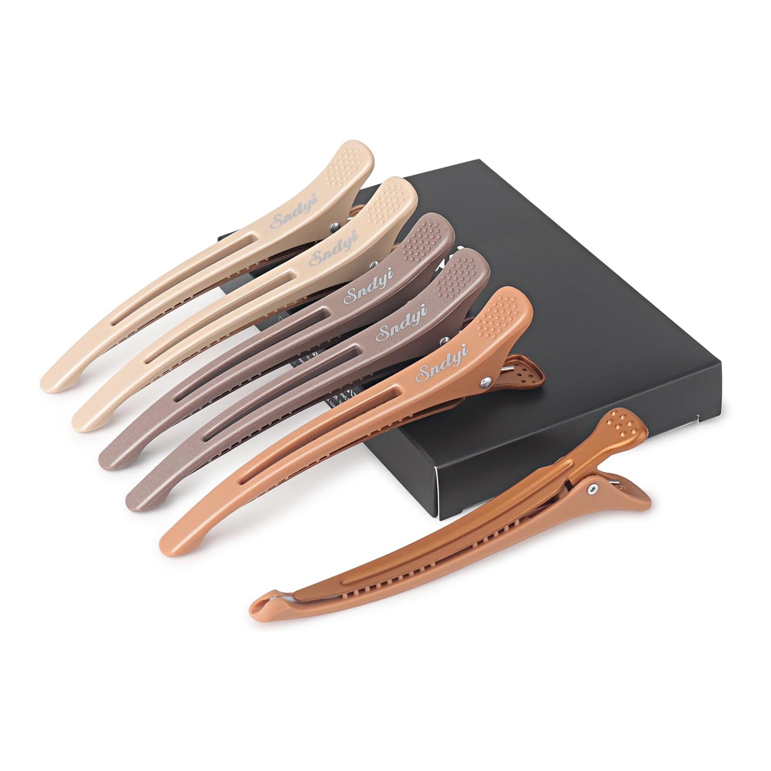 Sndyi 6pcs Neutral Hair Clips - Hair Clips for Styling Sectioning, Non Slip Duck-Billed Hair Clips with Silicone Band, Hair Roller Clips, Salon Hair Cutting Clips for Hairdresser, Barber, Women, Men