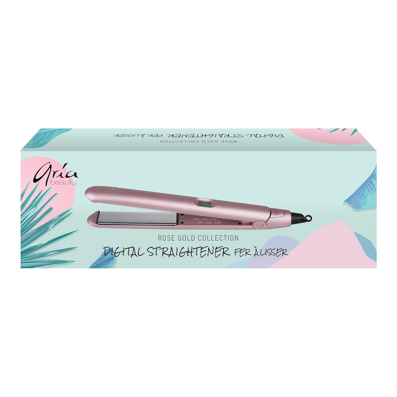 Aria Beauty 1" Rose Gold Digital Straightener, Titanium Plates, Heats up to 460F, Dual Voltage, Auto Shut Off, Floating Plates, for All Hair Types