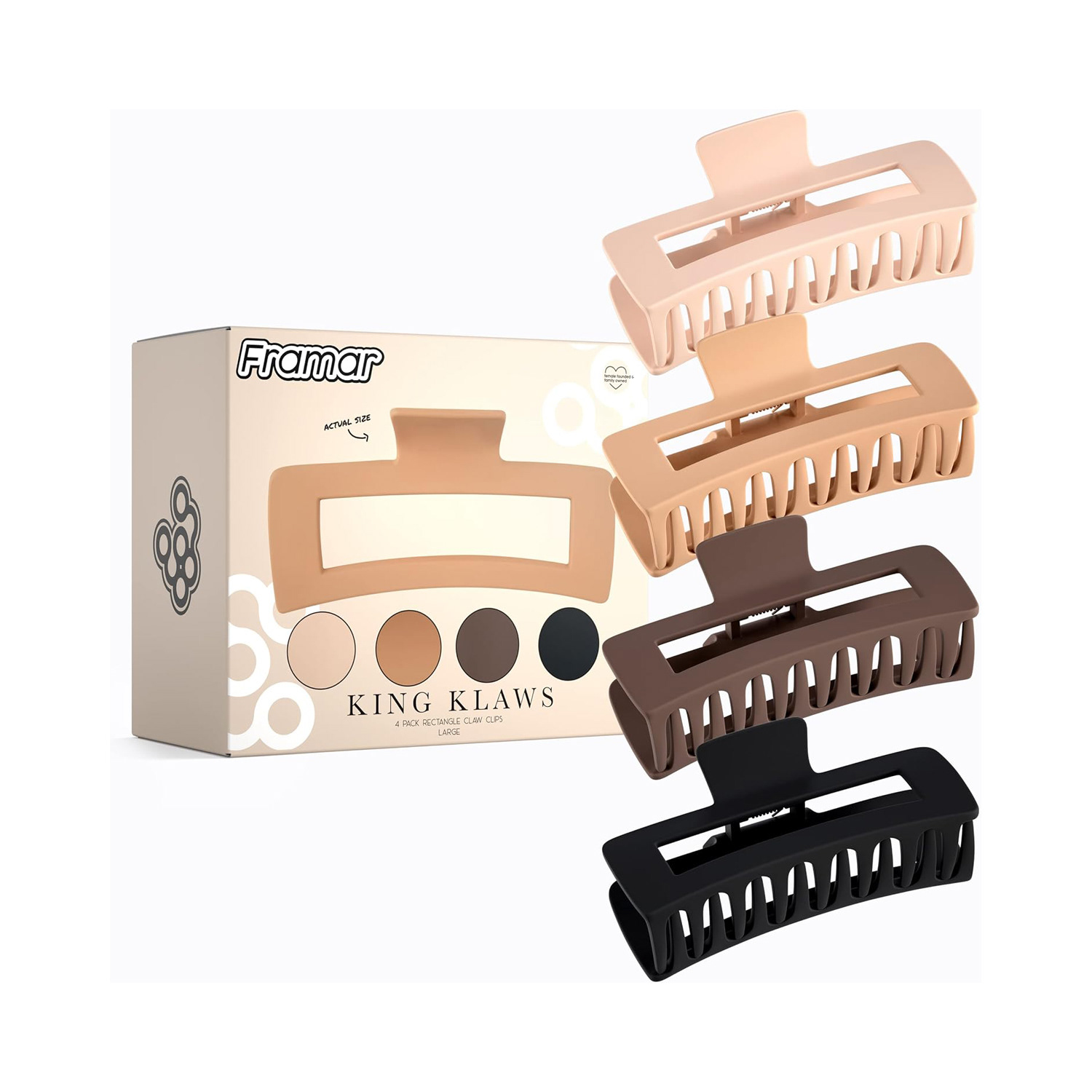 FRAMAR Big Claw Clips For Thick Hair – Extra Large Claw Clip For Thick Hair, Large Hair Claw Clips For Thick Hair, Hair Clips For Women, Hair Accessories For Women, Pince a Cheveux - 4 Pack Neutral